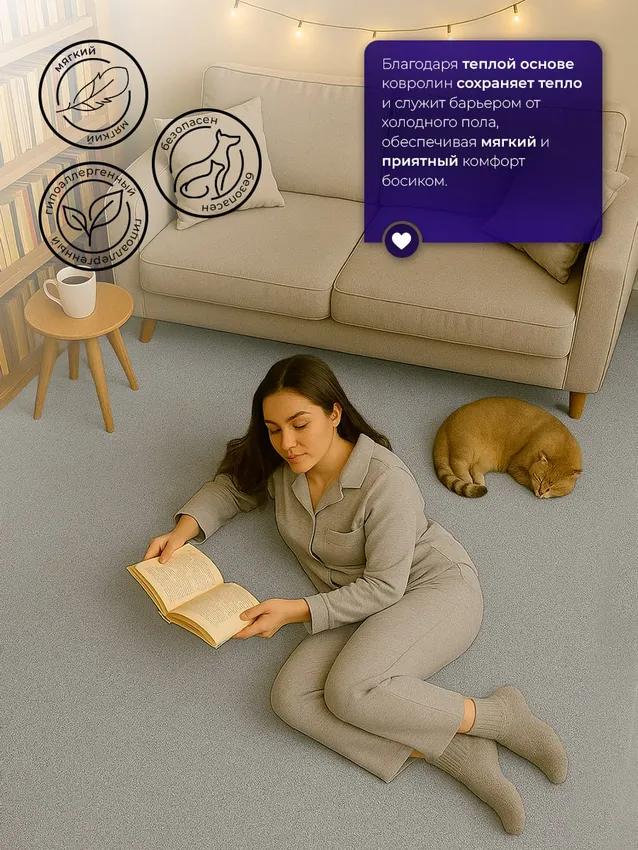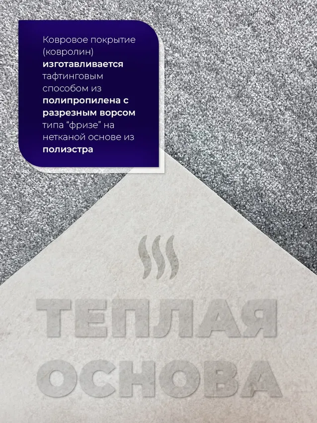 Ковролин Ирис изготавливается на войлочной основе, которая придает продукции дополнительные свойства: тепло- и звукоизоляцию. Напольные покрытия из полипропиленового волокна "фризе" мягкие и приятные на ощупь. Грязь и следы от обуви на таком ковролине не заметны, помимо этого коврик комнатный обладает анти статичностью, устойчивостью ко многим видам загрязнений, легко чистится, хорошо держит форму, сохраняя структуру в течение продолжительного времени. Паласы этой коллекции гипоаллергенны и безопасны для здоровья. Такой универсальный коврик добавит стильный штрих любому интерьеру как элемент декора и украшения для комнаты.